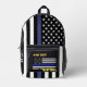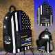 Sac à dos : Sac de ligne bleu mince personnalisé - style vintage, personnalisé "Nom / Numéro / District" ou tout autre texte avec Ligne Bleue Mince et Drapeau Américain (USA) - thème de l'application / police - prix, retraite, fête des pères, académie / école