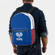 Sac à dos Padel avec options de conception de couleurs personnalisées. Sac cool avec raquette croisée et logo boule et citation humoristique. Ajoutez votre propre texte personnalisé en option. Pratique pour les joueurs de padel, fans, entraîneur, entraîneur de club, fête, événement etc. Padel Mange Le Sommeil Jouer Répéter. Exemple rouge blanc et bleu.