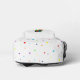 Un chat heureux avec de la fourrure arc-en-ciel est sur la poche avant. Un motif de petits pois colorés couvre le reste du sac.