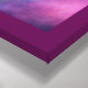 Sur fond de bleu royal et de nuages roses chauds complexes comme des galaxies lointaines, se trouve une seule orbe de verre lisse avec une fractale tourbillonnante suspendue à l'intérieur.