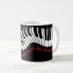 The text “I’m in perfect harmony with my piano mug” follows the wave of the keys, creating a smooth, musical rhythm in the design.
