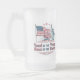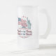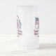 Vintage-style frosted beer mug celebrating 4th of July, featuring the American flag, Statue of Liberty, and the quote 'Land of the Free, Home of the Brave'. Perfect for American Independence Day.