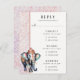 Répondez gracieusement à votre faire-part de mariage avec cette élégante carte RSVP. Doté d'un design d'éléphants floraux captivant, symbole de force et de bénédictions chez les mariages indiens, cette carte permet aux invités d'indiquer leur présence. Personnalisez la carte avec vos noms et une adresse de retour pour un processus de réponse transparent. Que les célébrations commencent !