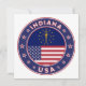 Badge de l'Indiana avec drapeau de l'Indiana et drapeau des couleurs des Etats-Unis, forme arrondie. Emblème de l'Indiana. Sceau de l'Indiana. Collection USA Etats. Indianapolis, Fort Wayne, Evansville, South Bend, Carmel, Fishers, Bloomington, Hammond, Gary, Lafayette