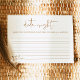 Cette carte d'idées dater nuit présente une police manuscrite pointue et un design minimaliste moderne avec une couleur beige et orange brûlé. Les couleurs sont modifiables ! Cliquez sur l'option "cliquer pour customiser plus loin" pour modifier les couleurs en fonction de votre thème. Ce jeu est parfait pour une douche nuptiale, une douche en couple ou un momento mariage.
