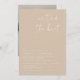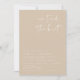 Cette invitation à la réception élégante présente une police manuscrite pointue et un design moderne et minimaliste avec un mélange de beige boho et de blanc. Modifiez le libellé *most* et toutes les couleurs pour répondre à vos besoins et ajoutez une photo à l'arrière pour une touche personnelle.