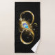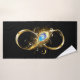Or, symbole brillant de l'infini, décoré de bijoux plumes paon avec turquoise sur arrière - plan noir.