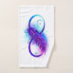 Symbole d'infini avec une belle plume peinte en violet et bleu couleurs vives sur l'arrière - plan blanc.