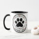 Celebrate the endless bond with your beloved pet with this striking two-tone mug. The design features a bold black paw print encircled by a frame of alternating red hearts and black infinity symbols, with the phrase "INFINITE LOVE" beneath. It's a perfect gift for dog or cat parents, for pet adoption celebrations, or as a loving pet memorial item. The black handle and interior add a stylish contrast to the white ceramic.