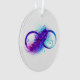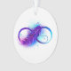 Infinity symbole with a beautiful feather painted in purple and blue bright colors on white background