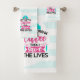 Serviette avec un dicton humoristique : D'abord je bois le café, puis je sauve des vies. Parfait pour les infirmières. Illustration d'une infirmière portant un casquette infirmier à l'ancienne et mignon et portant une aiguille hypodermique géante. Arrière - plan rayé bleu clair et blanc.