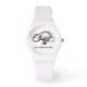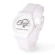 Cette montre blanche customisée a une bande blanche en caoutchouc et une seconde main. Il peut être customisé avec le nom et/ou l'installation.