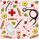 Invitations de groupe créatifs de l'école de soins infirmiers présentant des fournitures de santé et des fleurs sur arrière - plan rose. Modifiez le texte pour créer une invitation ou un faire-part unique de groupe d'infirmières.
