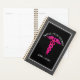 Suivez votre horaire chargé planifié et organisé avec cette infirmière praticienne Médicale Pink Caduceus Name Planner. Il a un design amusant d'un symbole médical rose néon et une touche de vert. L'Arrière - plan est gris et noir. Le texte est "infirmier praticien" en caractères gras blancs. Personnalisé avec le nom sur le devant inférieur. Cliquez sur l'option personnalisée et entrez le nom.