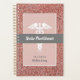 Organisez-vous avec cette infirmière praticienne Rose d'obtention de diplômes d'or Parties scintillant planificateur. Il est conçu avec un arrière - plan en faux parties scintillant rose rose moderne avec cadre rectangle rose vif et bande horizontale grise au centre. Le texte est "infirmière praticienne" en écriture calligraphie blanche et "planificateur" est sur le centre inférieur, suivi par le nom. Un symbole de cathétrie blanche est au centre. Fait une idée cadeau de remise de diplômes parfaite!