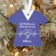 Personnalisé premier Noël comme un ornement d'infirmière à la retraite avec un gommage bleu et une illustration de stéthoscope. Customisez-le avec un nom et une année. Modifiez les couleurs de la peau et de l'uniforme en cliquant sur le bouton pour modifier la conception.