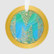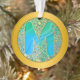 Initial Monogram M Christmas - Gold, Teal & Blue Ceramic Ornament. Adorn your tree with a touch of elegance this holiday season with the Luxury Gold Filigree Monogram 'M' Christmas Ornament. This stunning ceramic decoration features a vibrant teal and blue agate-style swirl background, overlaid with an intricate, laser-cut-like gold mandala and floral lace design.