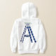 Lettre initiale A faite avec des images de Pierres de Sapphires en découpe rectangulaire, Coupe d'oreille et Coupe de Marquise, au centre de la coupe trapézoïdale et coupe fantaisie Diamants sur le grand Sapphire en forme de Marquise, accentué d'une fleur blanche sur le dessus de la lettre A. Sapphire est la pierre de naissance de Septembre. Le bleu est la couleur du Throat Chakra.