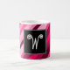 Les caractéristiques de conception ce de tasse un motif rayé comportant de diverses nuances de couleurs aiment le rose et le magenta. Il comporte également une lettre initiale personnalisée de prénom ou de nom de famille dans une police intéressante dans un secteur carré foncé. Il pourrait être donné comme cadeau customisé à quelqu'un qui a un prénom ou un nom de famille qui commence par la lettre initiale.