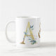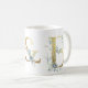 Initiale dorée, aquarelle bleue, tasse à couple, cadeau fiançailles et mariage parfait, © Julie McIver