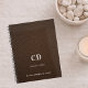 Une photo en faux cuir marron comme arrière - plan et texte blanc. Personnalisez et ajoutez vos initiales monographiques, votre nom et une année de titre.