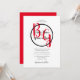 Ce design présente un arrangement élégant mais simple des initiales personnalisées de la mariée et du marié. Les noms des couples sont encerclés d'une bague noire et placés sur les initiales du prénom de la mariée et du marié qui sont affichées en typographie rouge. Ce design rouge, noir et blanc est simple mais élégant dans tous les sens. Le verso affiche un arrière - plan de couleur rouge. Le mélange des couleurs crée un style chic, tendance et sophistiqué. Conception élégante d'invitation de mariage avec des éléments modernes. La configuration simple de la typographie lui donne un style distinct. Des articles de papeterie mariage correspondants et d'autres formats d'invitation de mariage sont également disponibles.