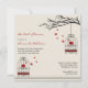 Des invitations à la douche de la mariée Inséparable avec de mignons petits inséparables rouges dans des cages vintages, chantant entre eux avec des coeurs rouges flottant dans l'air. Obtenez les timbres de douche de la mariée ci-dessous :