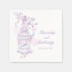 Joli couple d'oiseaux en ligne dessin graphique d'une cage d'oiseau ouverte accrochée à un arbre de printemps fleuri avec des coeurs. Mariage moderne chic design moderne partie de la cage d'oiseau romantique mariage fixe ensemble. Jolies teintes pastel violet et rose doux sur une couleur crème arrière - plan. Modifiez cette serviette mariage avec votre propre nom de mariée et mariée et dates de mariage. Papier simple mais élégant serviette un grand ajout personnalisé nos tables mariages. Dessin unique et design par Sarah Trett.