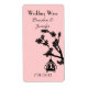 Élégant étiquettes de vin mini pour votre mariage, fait en rose, avec de beaux graphismes en silhouette noire d'inséparables, dans une cage d'oiseau, accroché à une branche d'arbre fleurie. Le texte en noir est prêt à être personnalisé avec vos informations de mariage. Accompagnement de réception parfait, avec nos produits chic rose et noir Inséparables mariage.