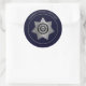 L'insigne d'agent correctionnel ROUND STICKERS est un dessin d'art graphique. Le badge est créé en argent (ou or) et en noir avec une petite touche de bleu. Un badge décoratif de sept (7) points d'argent ou d'étoile d'or forme l'insigne. Le texte qui courbe le haut de l'insigne dit : MINISTÈRE DES CORRECTIONS. Texte en bas : AGENT CORRECTIONNEL. Ces mots s'assoient sur un anneau bleu solide. Plus d'argent/or décorent l'insigne partout. Au centre se trouve un emblème d'aigle aux étoiles d'argent et d'or. Le texte plus petit au centre dit : Sceau de l'Etat. Le badge n'est PAS spécifique à l'état. Une jante extérieure bleue avec du texte argent/or courbant autour du haut qui dit : OFFICIER CORRECTIONNEL. Ce badge est en argent ou en or avec des arrière - plans noirs ou bleus. Cet arrière - plan est bleu solide avec un badge en argent, du texte décoratif en argent et des jantes en argent.