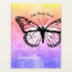 Éclairez votre journée avec ces papillons monarques délicats flottant sur ce planificateur monogrammé. Ce dessin présente l'illustration noire d'un papillon monarque aux éclaboussures blanches et aux accents fleuris blancs sur un arc-en-ciel arrière - plan de jaune, rose, bleu et violet. Au-dessus du papillon dans un script moderne qui dit "Foi, Famille, Amis". À gauche du papillon, vous trouverez votre nom en typographie blanche qui peut être personnalisée. Sur le dos se trouvent trois papillons gracieux. Fait le cadeau parfait pour les amoureux de la nature et des papillons. Conçu par l'artiste mondialement connu Tim Coffey.