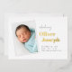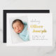 Les cartes de faire-part de naissance fraîches et modernes comportent une photo verticale avec une bordure blanche, placée en diagonale avec le nom de votre bébé en feuille d'or à côté. Les statistiques de naissance du bébé et la signature de votre famille complètent le design. Ajoutez trois photos supplémentaires à l'arrière.