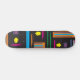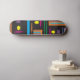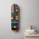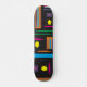 Une carte rétro en noir avec un design abstrait de formes incluant des directions de flèches jaunes! Couleurs vert bleu orange rose.