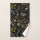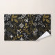 Intricate floral pattern with gold and white branches, leaves, and flowers on a black background. The design feels elegant and sophisticated.