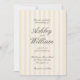 Le Faire-part de mariage rayé Vintage jaune allie charme intemporel et design rayé sophistiqué, parfait pour les couples qui souhaitent ajouter une touche d'élégance vintage à leur journée spéciale. Avec ses tons jaunes chauds et sa typographie raffinée, cette invitation donne le ton d'une fête mariage classique et élégante. Idéal pour des mariages d'inspiration vintage, estivale ou élégants, cette invitation magnifiquement conçue vous permet de profiter de l'occasion joyeuse à venir.