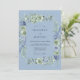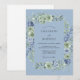 Cette conception présente une palette de couleurs tranquille de bleu de bleuet tendre et de vert sauge, créant une atmosphère romantique et aérienne. Des roses délicates à l'aquarelle et des hortensias luxuriants sont artistiquement disposés dans l'ensemble de la composition, complétés par des feuilles et des brindilles délicates. Les textures de peinture et les tons assourdis évoquent un sentiment d'élégance intemporelle pour un événement botanique.