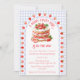 At the center of this baby shower invitation is the sweetest strawberry shortcake, framed by a scalloped border sprinkled with tiny strawberries like little kisses of summer. Set against a soft watercolor gingham backdrop, the whole design feels light, nostalgic, and delightfully fresh.