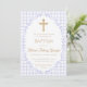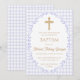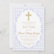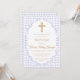 Cette invitation de baptême présente une délicate croix aquarelle ornée de détails ornés, doucement encadrée par une couronne de vignes de verdure douce. Sur un fond à carreaux aquarelle léger, le design dégage un charme vintage doux.