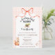 A sweet illustration of a squirrel cradling an acorn delivers added charm to this "A Little Acorn is on the Way" themed baby shower invitation. Rustic cottagecore appleal is added with a watercolor bow & a watercolor gingham background.