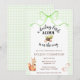 Invitation 017 Moss Green Squirrel Acorn Gingham Baby Shower