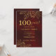Luxe élégant vintage inspiré 100e anniversaire modèle d'invitation de fête avec feuillage feuille et script de typographie or sur un arrière - plan antique bordeaux profond en détresse. — L'invitation est adapté à toutes les saisons des fêtes d'anniversaire jalons - trente, quarante, cinquante, soixante, soixante-dix, quatre-vingts, quatre-vingt-dix, cent - ou d'autres célébrations d'anniversaire. ++++++++++++++++ Il est entièrement modifiable et facile à personnaliser avec vos détails!
