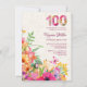 Invitation 100 ans Fleurs lin floral 100e anniversaire