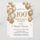 100e anniversaire Ballons de Parties scintillant blanche et or Invitation d'anniversaire. Pour plus de personnalisation, cliquez sur le bouton "Customiser" et utilisez notre outil de conception pour modifier ce modèle.