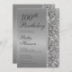 Cette élégante et luxueuse parties scintillant d'argent et de diamants face 100e anniversaire est parfait pour votre célébration. C'est chic et les polices modernes sont nettes et nettes et rendent cette invitation unique et unique comme votre mère, soeur, tante, amie, grand-mère, arrière-grand-mère. Le dos de coordination est beau.