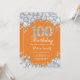 100e Invitation d'anniversaire. Diamant de Rhinestone orange et argent. Élégant invitation du Bassin d'Anniversaire. Anniversaire adulte. Les femmes, anniversaire. Hommes Anniversaire.