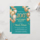 100e anniversaire Turquoise et or Parties scintillant ballons Invitation anniversaire. Pour plus de personnalisation, cliquez sur le bouton "Customiser" et utilisez notre outil de conception pour modifier ce modèle.