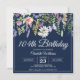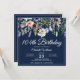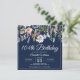 Elégante invitation bleu marine et fleur sauvage 104ème anniversaire que vous pouvez personnaliser avec vos détails de fête.
