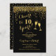 Invitation pour 10e anniversaire de mariage. Félicitations pour 10 ans ! Design élégant en noir et or. Comprend des verres à champagne, une police de caractères script et des confettis. Parfait pour une célébration élégante de 10 ans de mariage. Cartes d'invitation Zazzle imprimées ou modèle numérique à télécharger instantanément. Peut être personnalisé pour afficher n'importe quelle année ! Personnalisez avec vos propres détails.