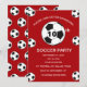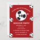 Fête du 10e anniversaire pour un fan de football, des sports, des enfants, des garçons, pour lui. Rouge et blanc, moderne, élégante invitation à la fête d'anniversaire. Veuillez le personnaliser avec vos détails.