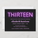 Cool moderne 13ème anniversaire invitation avec "treize" en néon violet lumineux sur un arrière - plan noir.